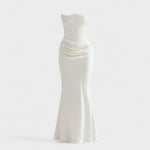 Роклята 'Радмила' представлява временно елегантен стил в най-красивия си вариант. Тази рокля, която достига до пода, има корсетен стил без презрамки, изработена от материя, която предоставя перфектна основа, докато артистичният набор в областта на бедрата създава завидни форми. Персонализираният силует преминава в деликатно разширяване на рибешкия опашка от лъскав сатен, което прави всяка стъпка специална.