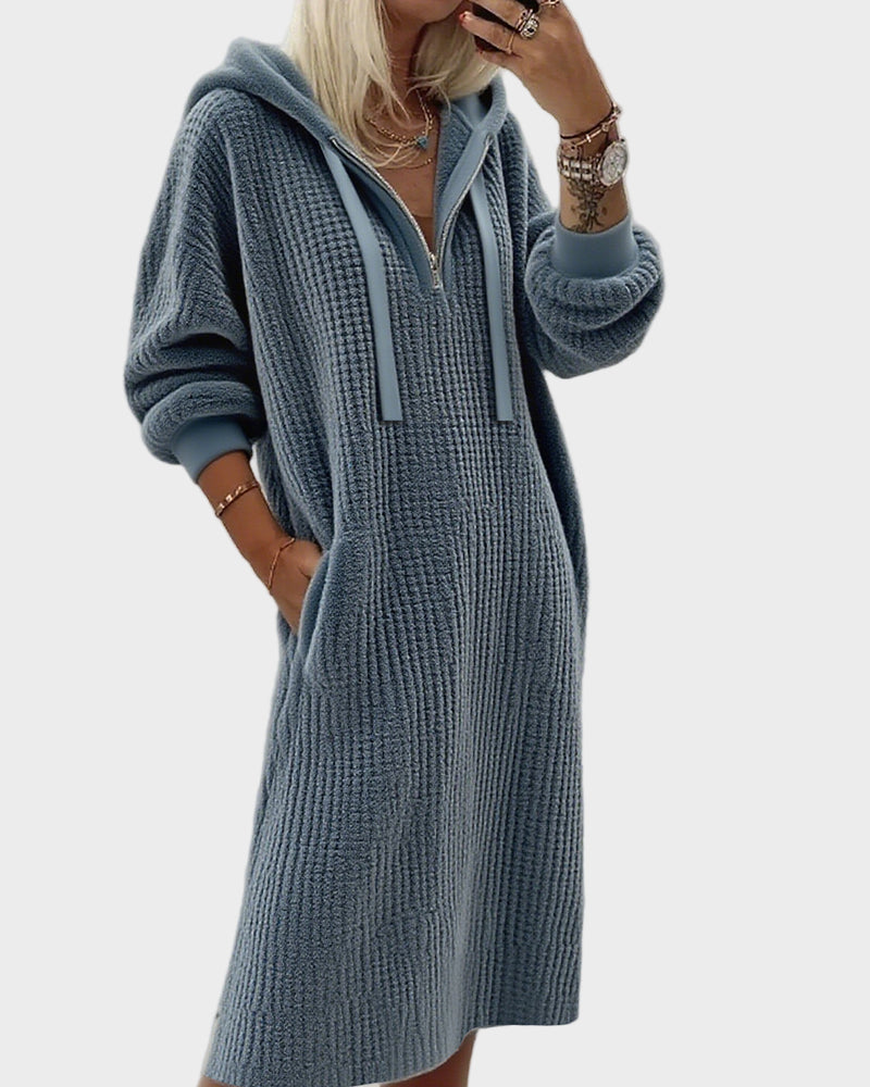 Ерика – Елегантна плетена вълнена рокля с качулка
