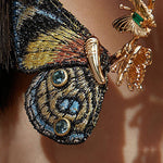 Потопете се в свят на поезия, елегантност и символика с тези extraordinari об earrings в античен стил. Нежните, бродирани пеперудени крила в кръгла рамка съчетават занаятчийско изкуство с почит към природата – перфектни за специални поводи като банкети, тържества или елегантни вечерни събития.