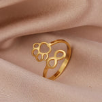Този стилен пръстен с безкрайност е мощен символ на вечната връзка между хората и животните. Изработен от издръжлива неръждаема стомана и регулируем по размер, той е идеален подарък за любителите на животни, двойки или като спомен за специални моменти.