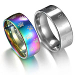 Празнувайте любовта си към животните по цветен и изразителен начин с този дъговиден пръстен от неръждаема стомана, който има отпечатък от лапа. Този унисекс дизайн е подходящ както за мъже, така и за жени и показва гравирани отпечатъци от лапи на блестяща, многоцветна повърхност – идеален за всеки, който носи своите пухкави спътници в сърцето си.