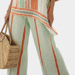 Елегантен комплект от лен и бамбук с райета и асиметрична блуза и широки панталони за изтънчен стил