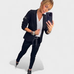 • Стилен и удобен съчетание – сакото и спортните панталони комбинират елегантност с неформалност, създавайки модерен и удобен стил.