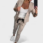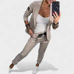 Стилен зелен комплект: сако и спортни панталони