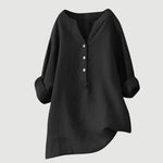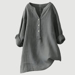 Излъчвайте деликатна елегантност с тази бяла блуза с минималистичен дизайн. Нейният небрежен характер с V-образно деколте и копчета отпред предлага практичност и стил, докато обърнатите ръкави добавят свободен и модерен щрих. Идеален избор за ежедневни и бизнес поводи.