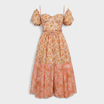 Рокля, перфектна за тези, които търсят романтичен допир с вдъхновение от природата. Валентина обгръща вашата мечтана силуета с деколте във форма на сърце, пухкави ръкави и ефирна пола, която се отк突ва със своето естествено движение и цветен модел в нюанси на праскова.