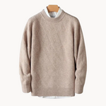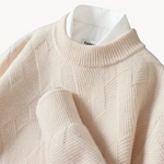 Този пуловер е изработен от смес от естествени влакна и вискоза, с жакардова конструкция. Тъканта е обработена за мекота и е проектирана да пада плавно. Патернът на плетивото добавя структура, докато запазва гъвкавостта на тъканта.