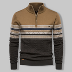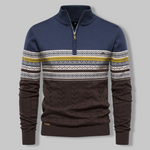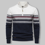 Пуловерът Alpenfrost предлага двуцветен алпийски дизайн с детайли от кабелна плетка, които добавят текстура и структура. Отворът с четвърт зипер позволява регулируема вентилация и лесно оформяне на яка. Смесената плетка осигурява баланс между комфортно усещане и дълготрайна употреба.