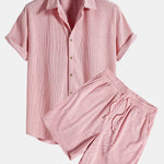 Този комплект с къс ръкав комбинира горна част с къс ръкав и координатни панталони. Използва леки и дишащи тъкани, за да помогне за поддържане на въздушния поток и да намали натрупването на топлина. Дизайнът позволява лесно движение и прости слоеве.