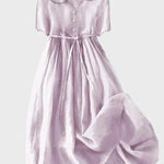 Тази нежна лилава рокля излъчва елегантност и романтика, идеална за всяка жена, която иска да подчертае своя стил с вечен вид. Минималистичният крой подчертава женствеността, докато коланът в талията деликатно акцентира на формата на тялото.