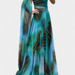 Дълга рокля Нивес с едно рамо и цветен детайл