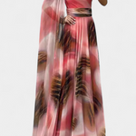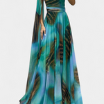Романтична и сложна, роклята Нивес внася скулптурен и женствен дух благодарение на изреза с едно рамо и драпирания ръкав. Деликатната цветна апликация повдига дизайна, докато макси силуетът се движи плавно с грация, създавайки незабравимо присъствие на всяко събитие. Изработена от мек и елегантен материал, балансира удобството с изискана бляскавост.