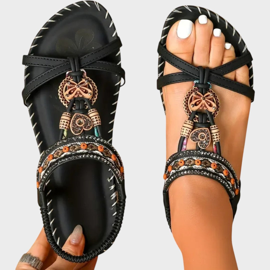 Тези ортопедични сандали перфектно съчетават комфорт и стил. Те са проектирани с ергономична подметка, която осигурява опора на стъпалото и улеснява целодневното ходене. Декоративните детайли добавят щрих на sophistication, докато гъвкавата изработка позволява естествено движение. Идеални са за ежедневна употреба, както и за специални поводи, когато искате да изглеждате модерно, а в същото време да се наслаждавате на комфорта.