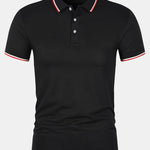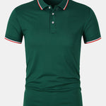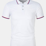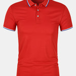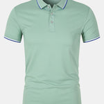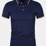Тази поло риза с слим кройка има леко еластично прилягане, което следва формата на тялото, без да се чувства стегната. Смесицата от дишащи материи позволява на въздуха да циркулира през тъканта, помагайки за намаляване на натрупването на топлина. Класическото яка и копчето осигуряват подреден деколте и лесно прилягане.