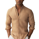 Тази лека риза е изработена от дишаща смес, която помага на въздуха да циркулира и намалява натрупването на топлина. Смесицата от тъкани позволява лесно движение и усещане за лекота върху кожата. Кройката осигурява чиста и изискана силуета, която приляга идеално на раменете и торса.
