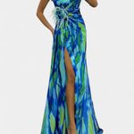 Бланка Макси Асиметрична Рокля с Вибрантен Узор