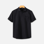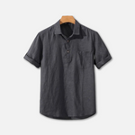 Тази поло риза е лека и дишаща. Позволява циркулация на въздуха, за да ви поддържа свежи. Кройката е свободна, но подредена. Раменете и ръкавите позволяват лесно движение. Яката и планката с копчета запазват структуриран вид, докато остават лесни за носене.