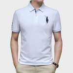 Това елегантно поло с къс ръкав и бродерия е перфектният избор за тези, които търсят изискан и стилен вид. Изработено от висококачествени материали и с внимателно внимание към детайлите, предлага уникален баланс между комфорт и класа, което го прави идеално за всякакви поводи.